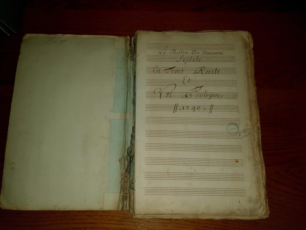 En fouillant dans le fonds patrimonial de la bibliothèque, un chercheur du conservatoire de musique tombe par hasard sur la copie d’une partition d’André Campra : Le Destin du nouveau siècle, un opéra baroque disparu depuis 200 ans et qui n’a plus été joué depuis 1706 !